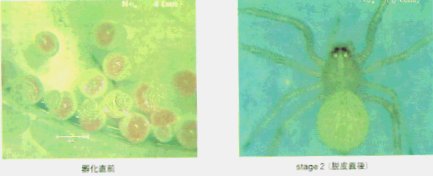 対して採集地点Bでは、25卵嚢、総卵数5335の内卵状態のものは、33.5%で1.令は8.4%、2.令は57.5%を占めていた。幾分採集地点Bは採集地点Aに比し卵の占める割合が高かったが、大きな差異は認められなかった(写真1)。しかしながら、各発育段階別における異常個体の割合は、特に採集地点Bの卵では63%で、stagelで約19.6%と採集地点Aのものに対してはるかに高率だった。異常卵の多くには、明らかにカビ類による異常(死亡)と思われたので、一部の卵と肉眼的に正常と思われる卵についてカビの分離を試みた。サブロー寒天培地に一卵粒を無菌的に室温下でシャーレ培養した。その結果、正常と思われる卵では、全く何も生えてこなかったが、異常卵からは(4卵粒使用)白色したカビ類の増殖が認められた。このカビ類については現在、検索中である。上記した採集地点での卵期およびstagelでの死亡要因としてカビ類が、関与していると考えられた。また、採集地点Bのものの死亡率が採集地点Aよりもはるかに高かった原因として、卯嚢の採集された環境が採集地点Bでは採集地点Aよりも卵嚢にとってカビ類の増殖しやすい環境にあるのかも知れない。ちなみに、両地点でセアカゴケグモの卵嚢が採集されたのは雨水排水路のグレーチングの溝内側であった。そこで両地点のグレーチングの構造、《まとめ》